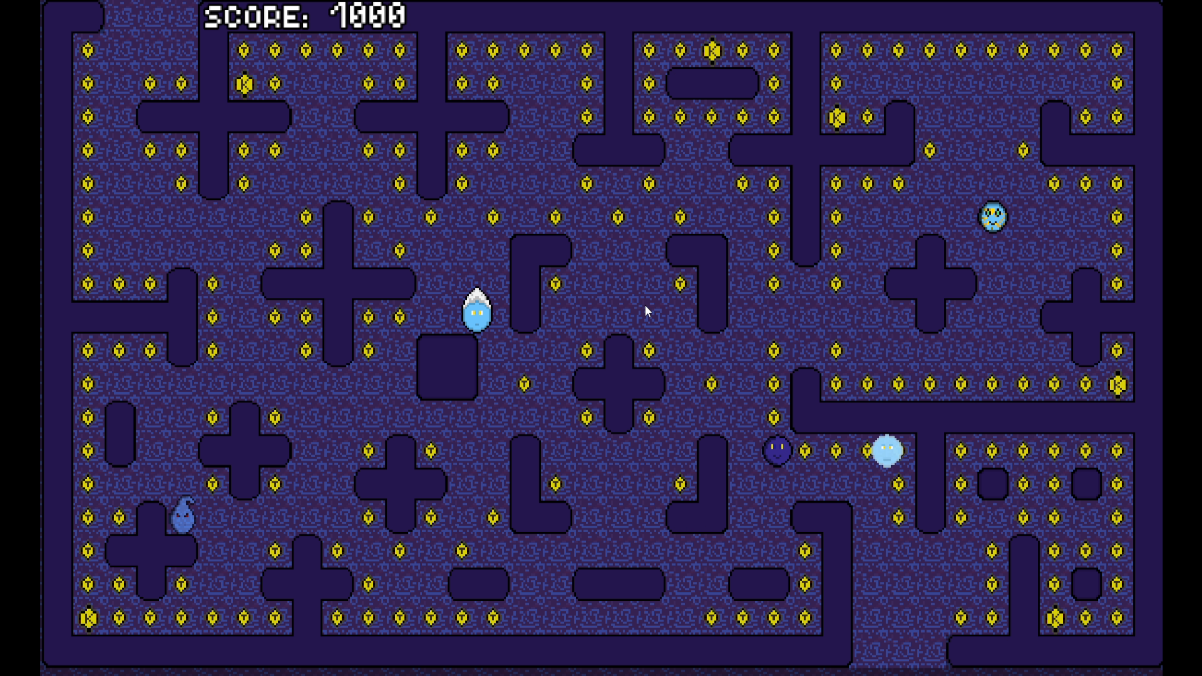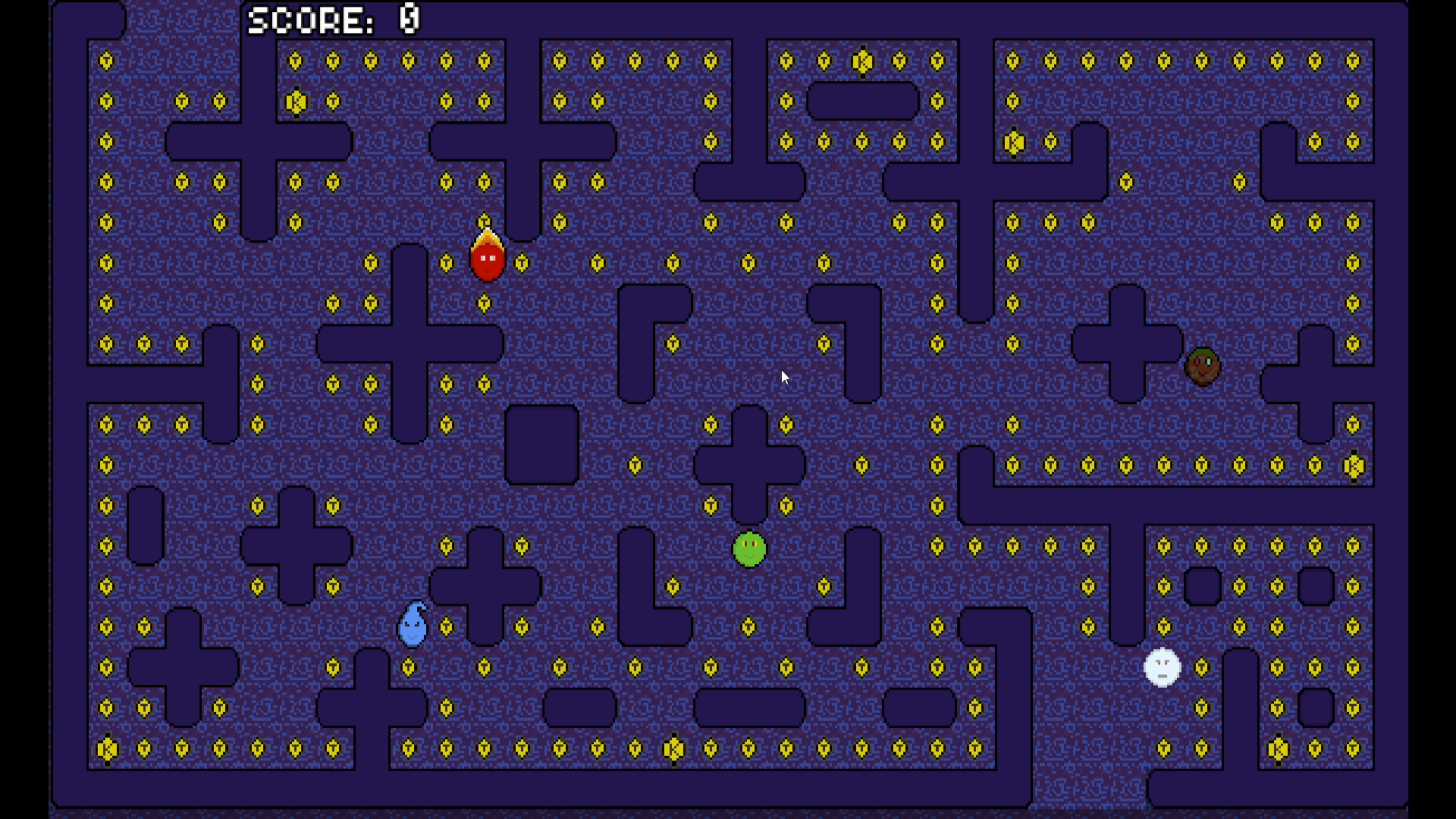 Collect every item on the map to rack up points and clear the level — all while avoiding the elemental enemies hunting you down.